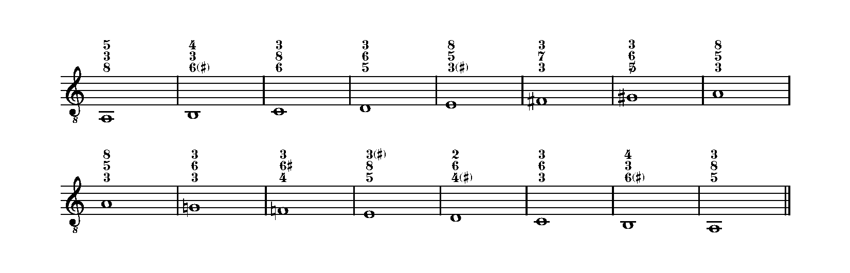 Rule of the octave in a minor from Stanislao Mattei’s Prattica d’accompagnamento sopra bassi numerati 1824/1891.