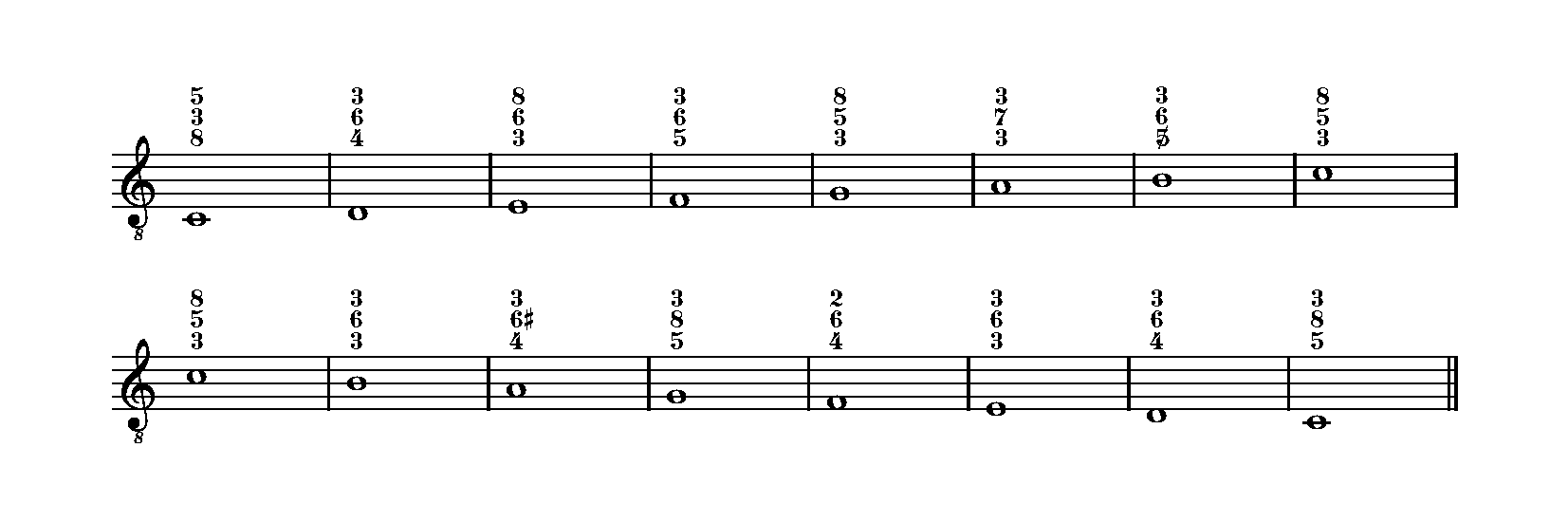 Exercise on the Accompaniment of the Scale […] by Lousia Kirkman notated in partimento style.
