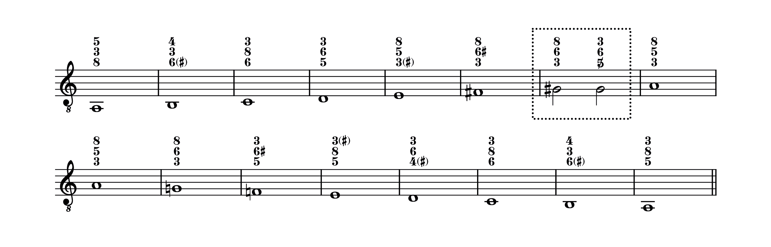 ➃ when ascending is harmonised in a standard fashion. When descending the scale the 2 is exchanged with the 3 (compare fig. 3 and 10) creating a nice suspension. This is resolved on the next scale degree.