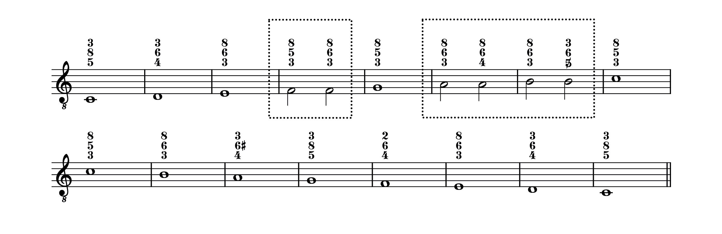 In figure 7 and 8 you can see Doisy’s harmonisation of the C major and a minor scale.