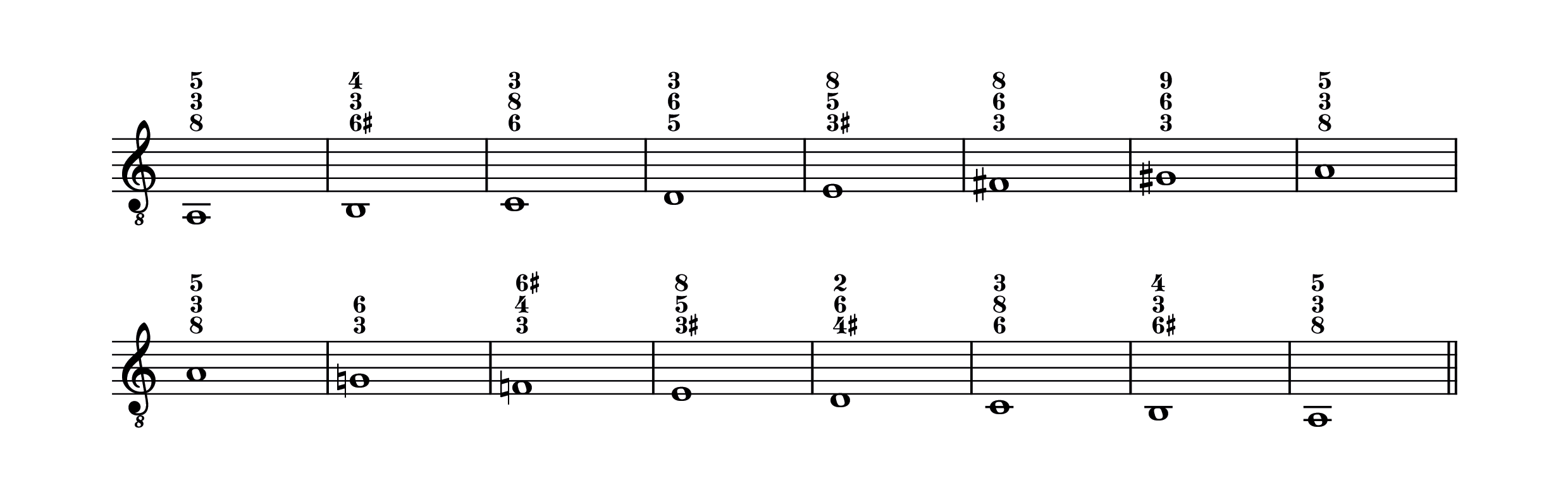 Gamme harmonique ou d’accompagnement / Harmonische oder begleitete Tonleiter by Franscesco Molini notated in partimento style.