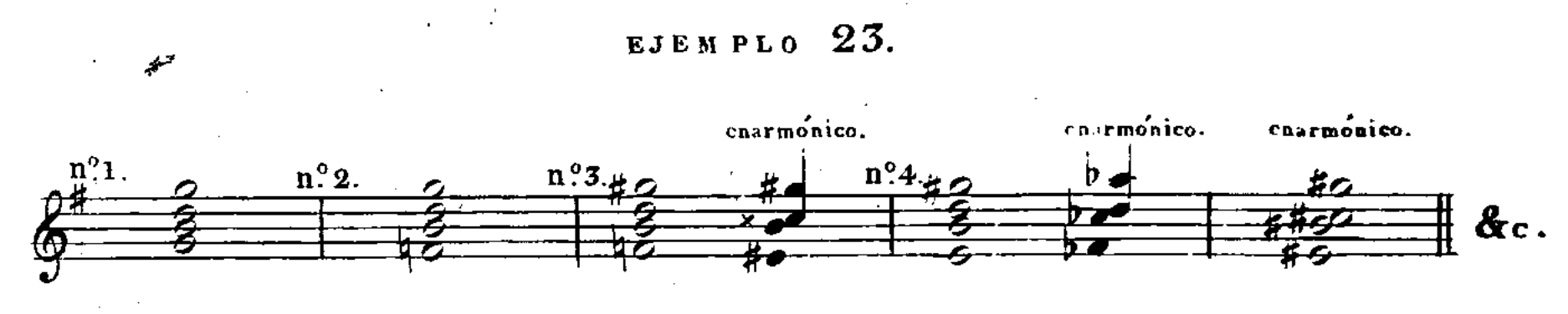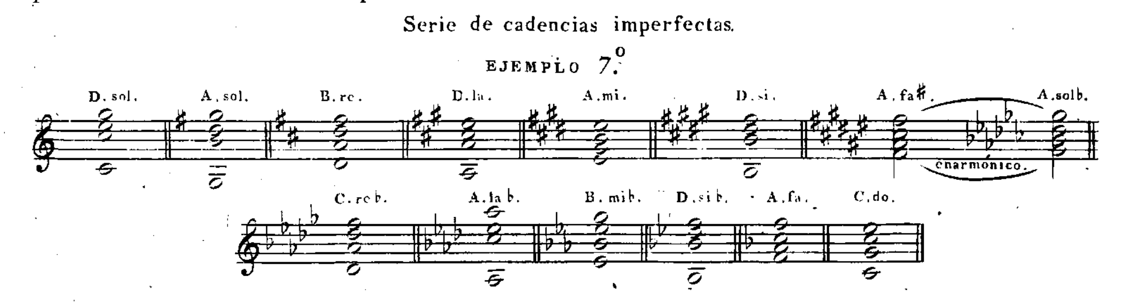 Subiendo por cuartas ó bajando por quintas se va aumentando um bemol hast llegar á seis: á estos se les sustituyen seis sostenidos, y se va borrando cada vez un sostenido hasta volver á do.