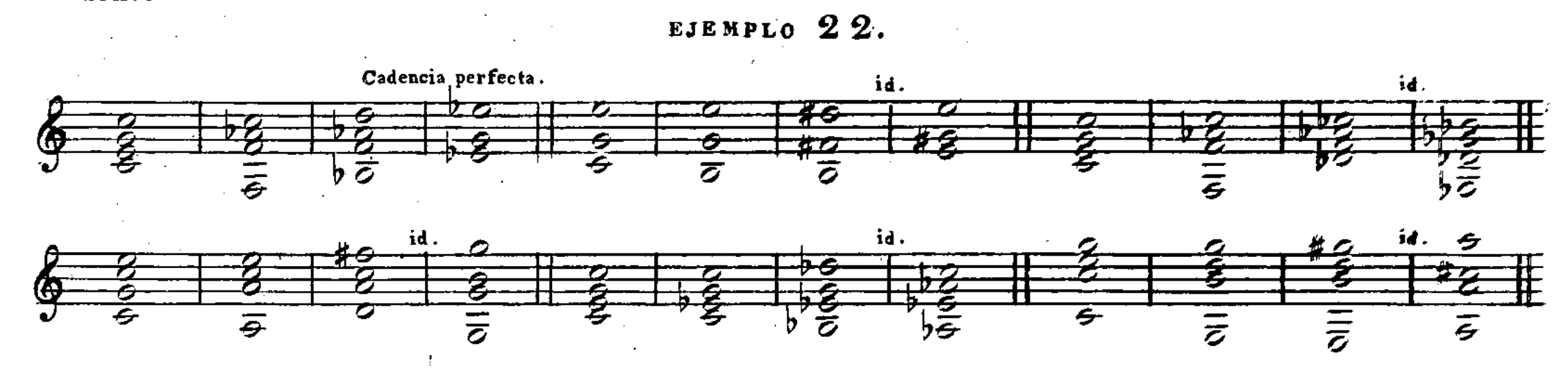 In a later edition by de Fossa published in France one year after the Escuela, the method is expanded on and some of the examples are modified. In the next example (3.1.1) de Fossa simplifies ejemplo 13o to chords with three voices instead of four.